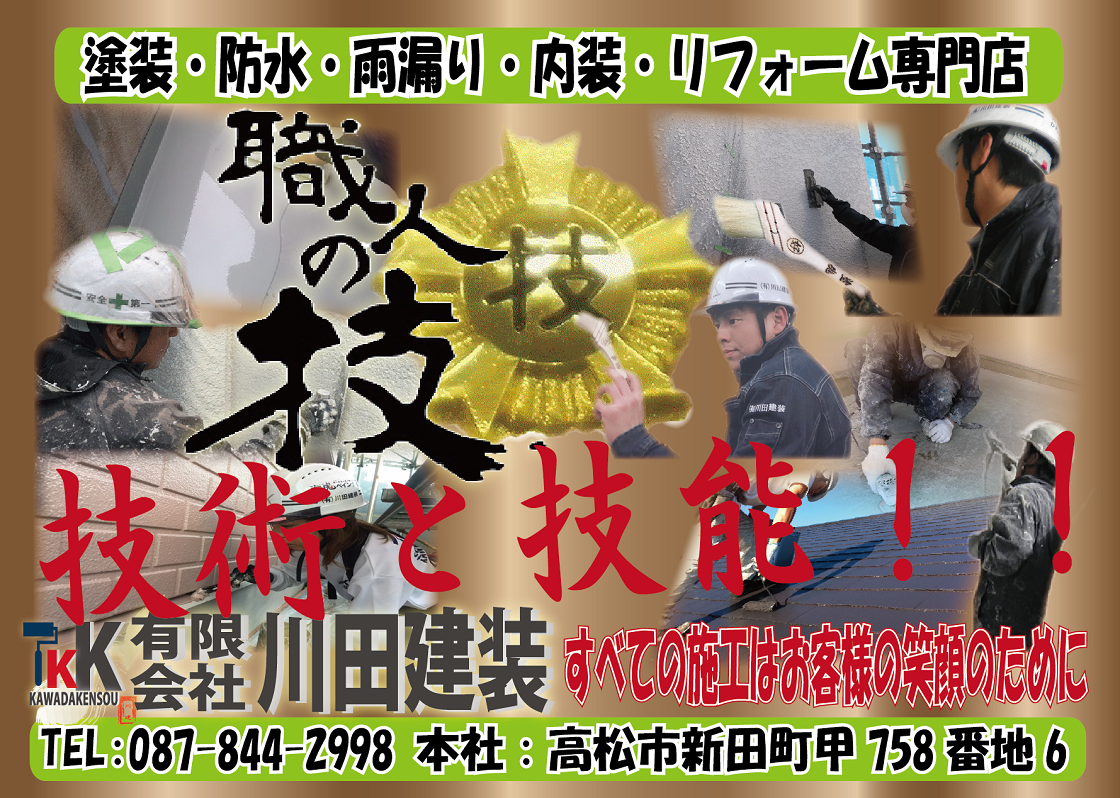 香川県外壁塗装・香川県防水工事・香川県雨漏り調査・香川県内装工事は県下