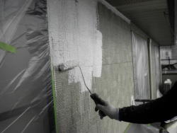 養生(汚してはいけない所を専用のナイロンで隠します) 状況 |
