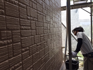 こちらの施工は、砂状仕上げ(シリコン系)を行い、最終クリヤーまで塗布するという施工内容でした。計6回施工仕様。