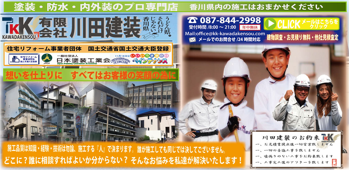 現在香川県内も梅雨時期にも入り、これから台風シーズンとなってまいりますから、雨漏りが懸念されます。